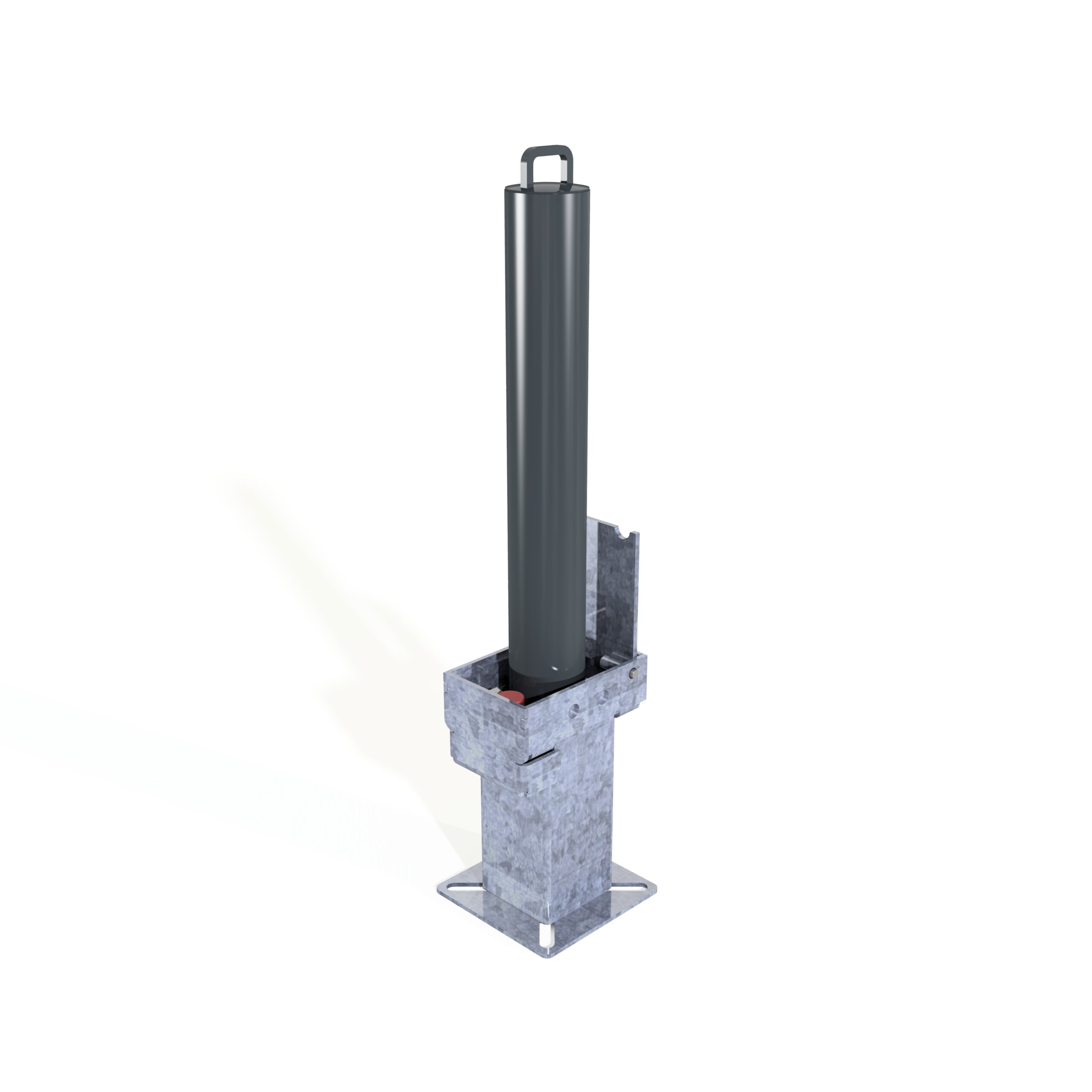 The RGP (removable ground post) offers a highly effective and robust way to protect premises and vehicles. The post is 500mm above ground, when removed the socket is covered using the integral lid. The post is lockable by rotating the post 45° and then pressing the high-security push button 7-pin security lock. The post is unlocked using the supplied key, rotated and then removed.