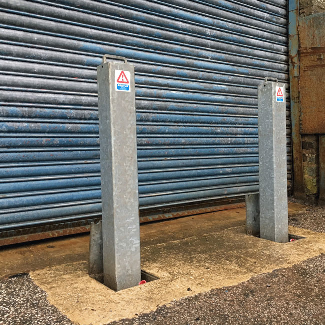 The RGP (removable ground post) offers a highly effective and robust way to protect premises and vehicles. The post is 900mm above ground, when removed the socket is covered using the integral lid. The post is lockable by rotating the post 45° and then pressing the high-security push button 7-pin security lock. The post is unlocked using the supplied key, rotated and then removed.