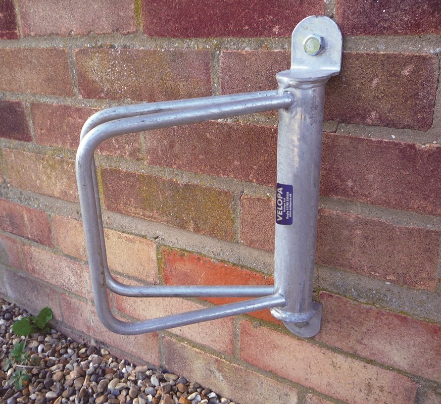 The simplest cycle holder, a familiar sight throughout the UK, allows the tyre of the bicycle to be supported. The stand is fixed to a suitable wall and can be spaced at no less than 610mm between holders for cost effective cycle parking. The Model R is available in either 90° or 45° versions which allow for cycles to be parked either head-on or angled.