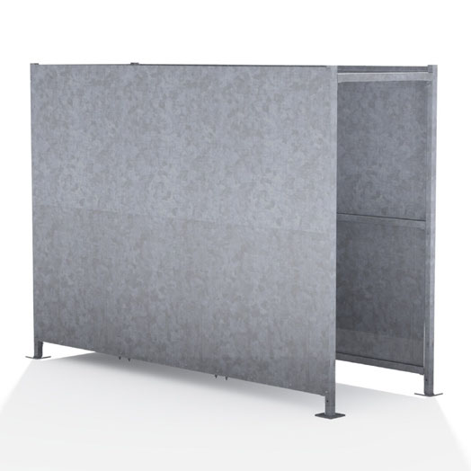 The Foxton shelter is free-standing. Designed for on site assembly, constructed from galvanised mild steel.