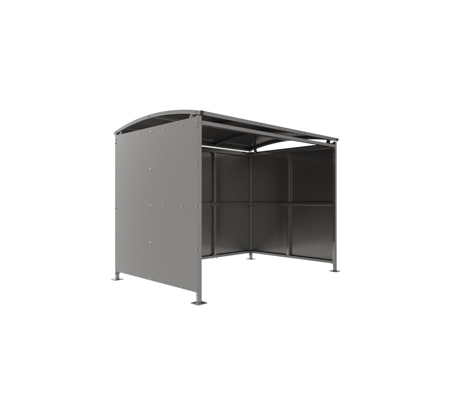 The Badby shelter is a free-standing, open sided shelter designed for on site assembly, constructed from galvanised mild steel. Complete with galvanised sheet roof, and side panels. Front-to-back curved roof. Width of 2m, with lengths from 1m-5m, extension bays can be added to achieve the desired shelter length.