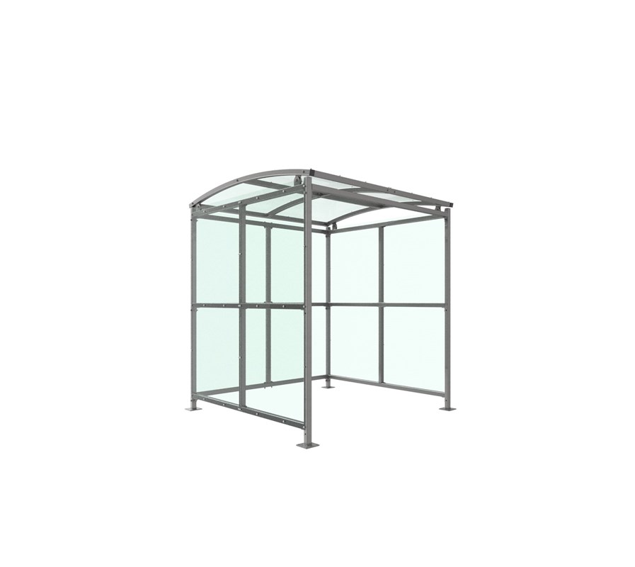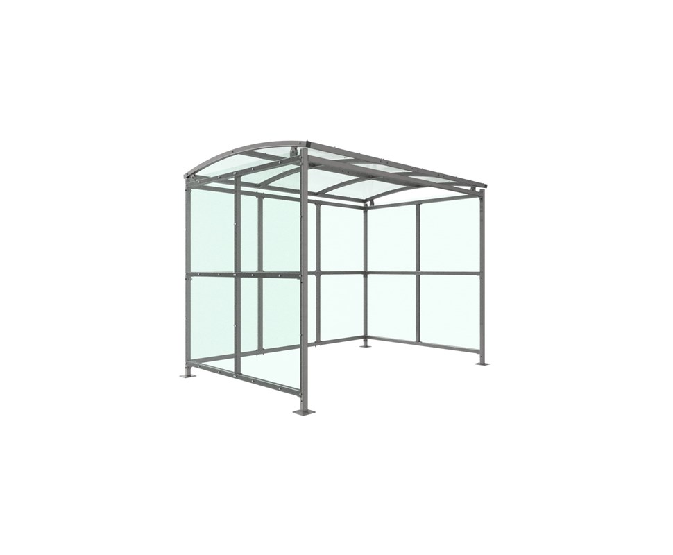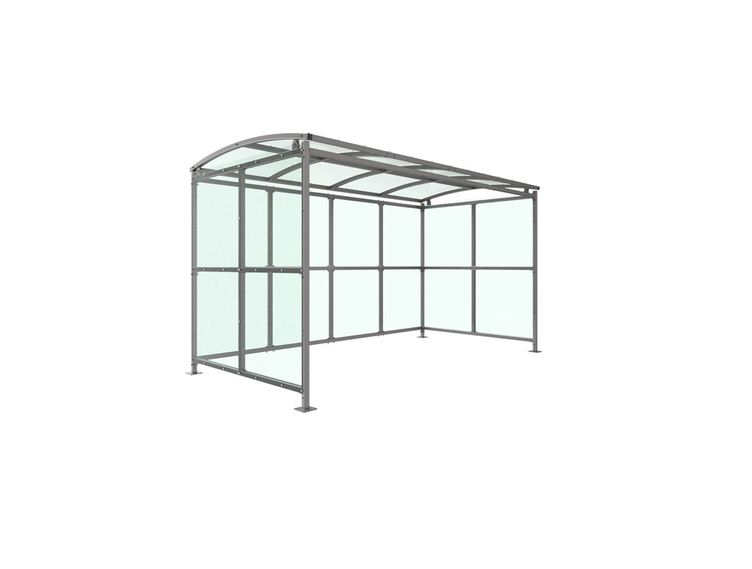 The Badby shelter is a free-standing, open sided shelter designed for on site assembly, constructed from galvanised mild steel. Complete with a 4mm PETG clear sheet roof, and side panels. Front-to-back curved roof. Width of 2m, with lengths from 1m-5m, extension bays can be added to achieve the desired shelter length.