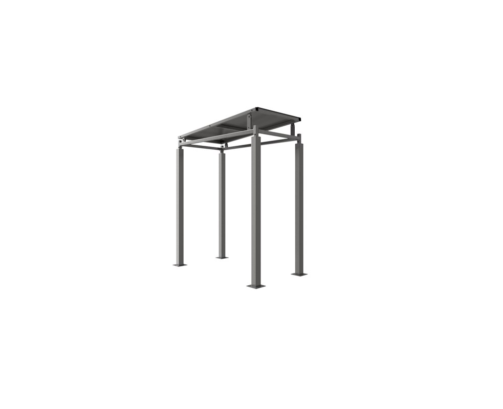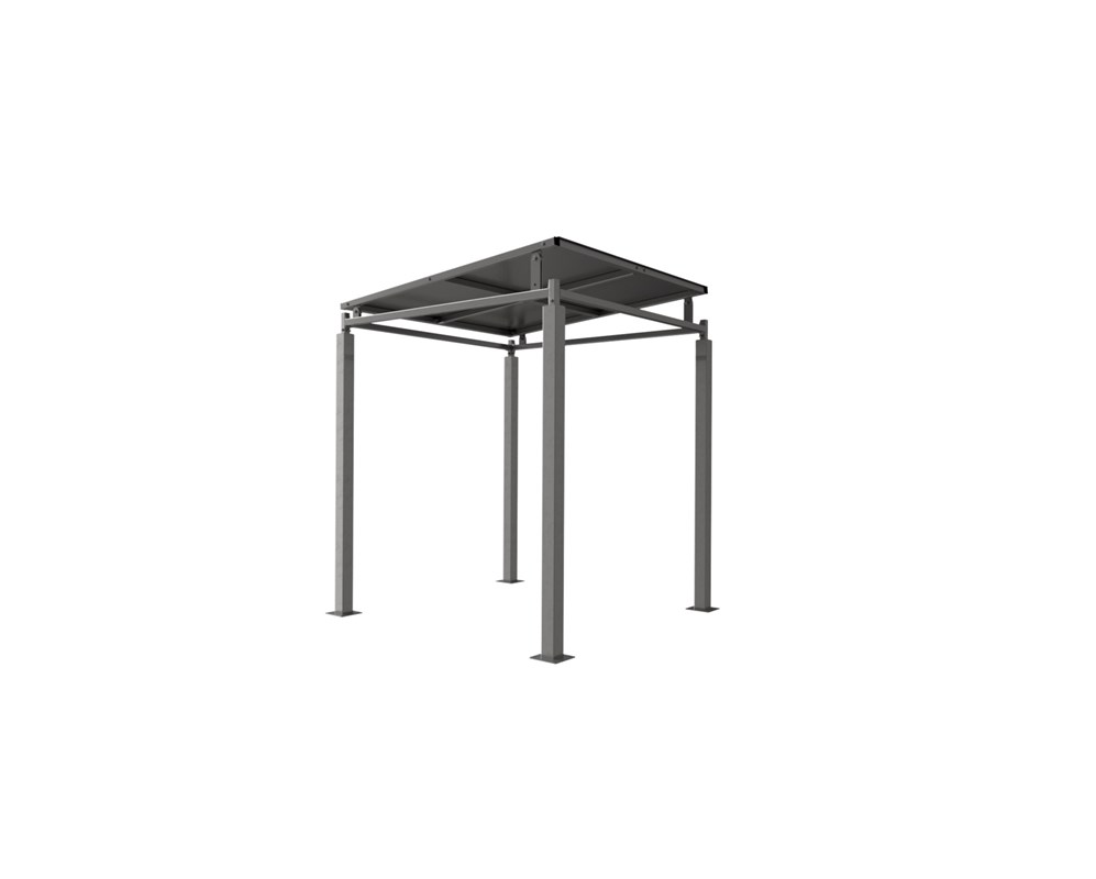 The Bedford shelter is a free-standing, open sided shelter designed for on site assembly, constructed from galvanised mild steel. Complete with galvanised sheet flat angled roof.