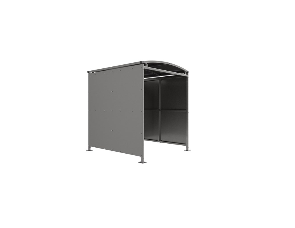 The Binley shelter is a free-standing, open fronted shelter designed for on site assembly, constructed from galvanised mild steel. Complete with galvanised sheet roof, and side panels. Side-to side curved roof. Width of 2m, with lengths from 1m-5m, extension bays can be added to achieve the desired shelter length. Bolt down as standard.