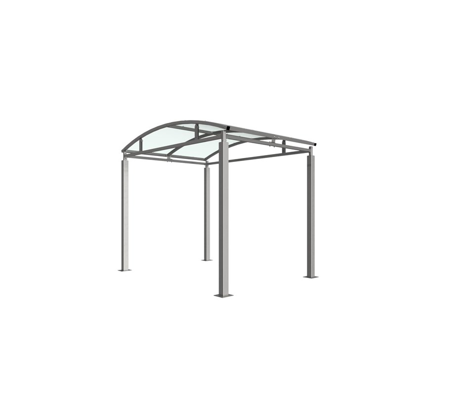 The Bolton shelter is a free-standing, open sided shelter designed for on site assembly, constructed from galvanised mild steel. Complete with a 4mm PETG clear sheet curved roof.