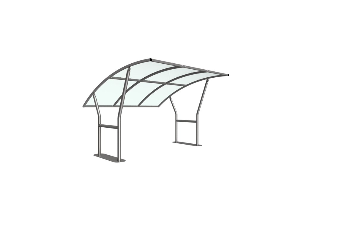The Cambourne shelter is a free-standing, open sided shelter designed for on site assembly, constructed from galvanised mild steel. Complete with a 4mm PETG clear sheet curved roof.