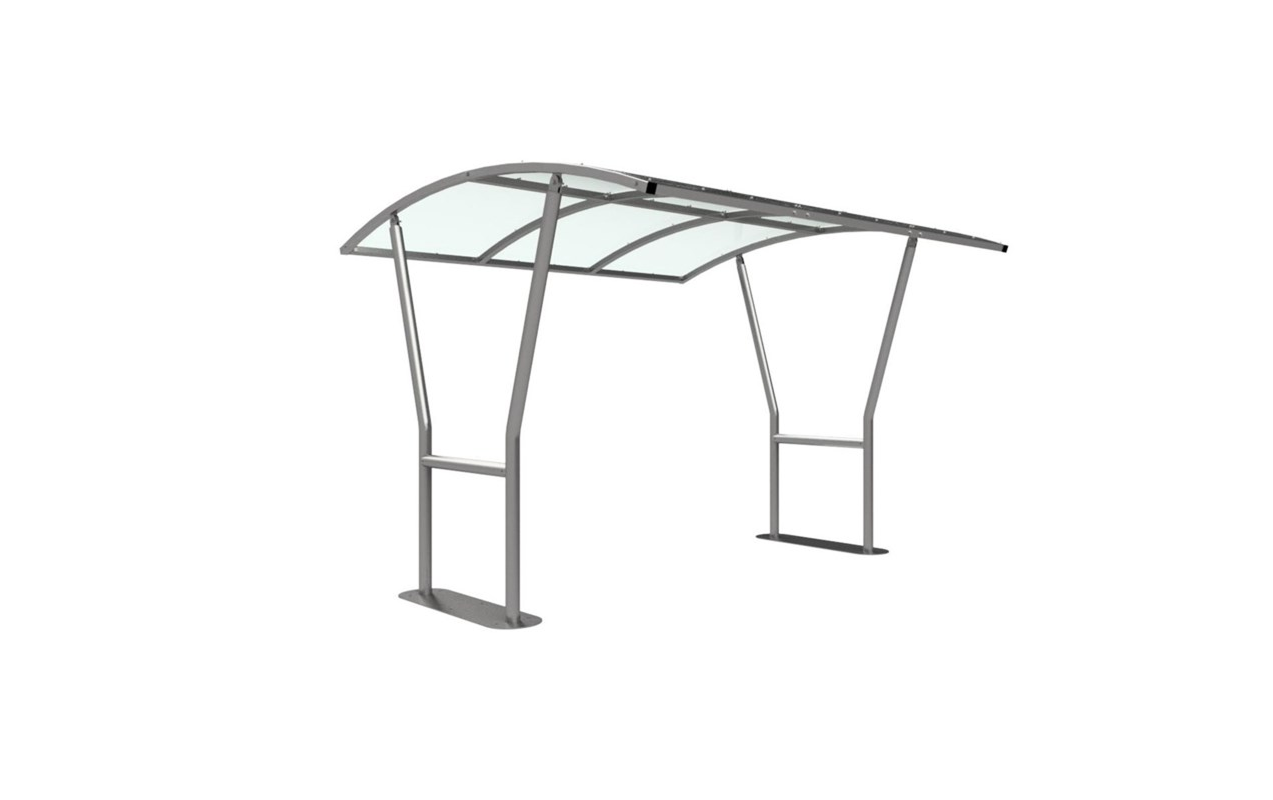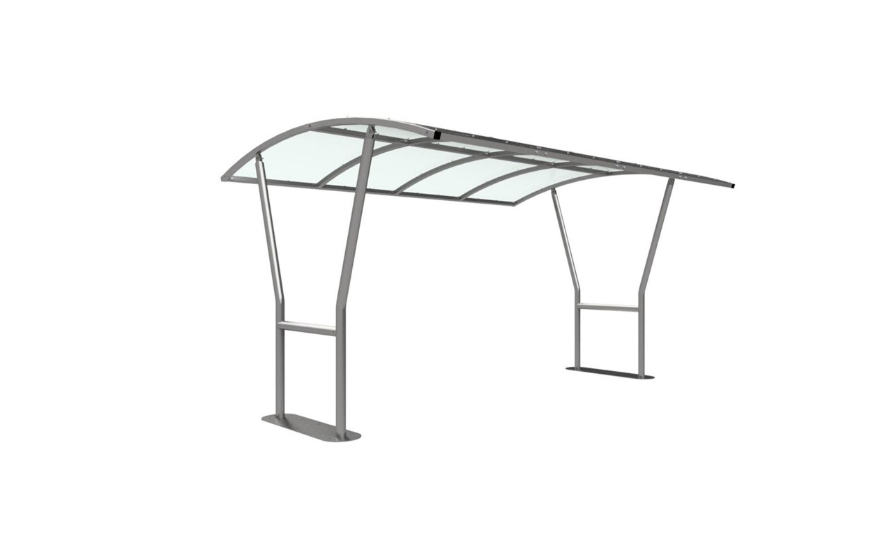 The Canterbury shelter is a free-standing, open sided shelter designed for on site assembly, constructed from galvanised mild steel. Complete with twin wall polycarbonate sheet curved roof.