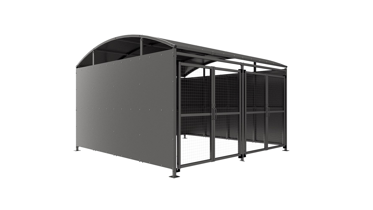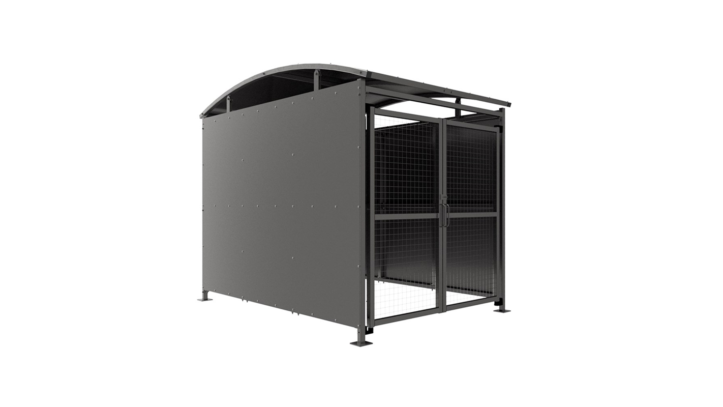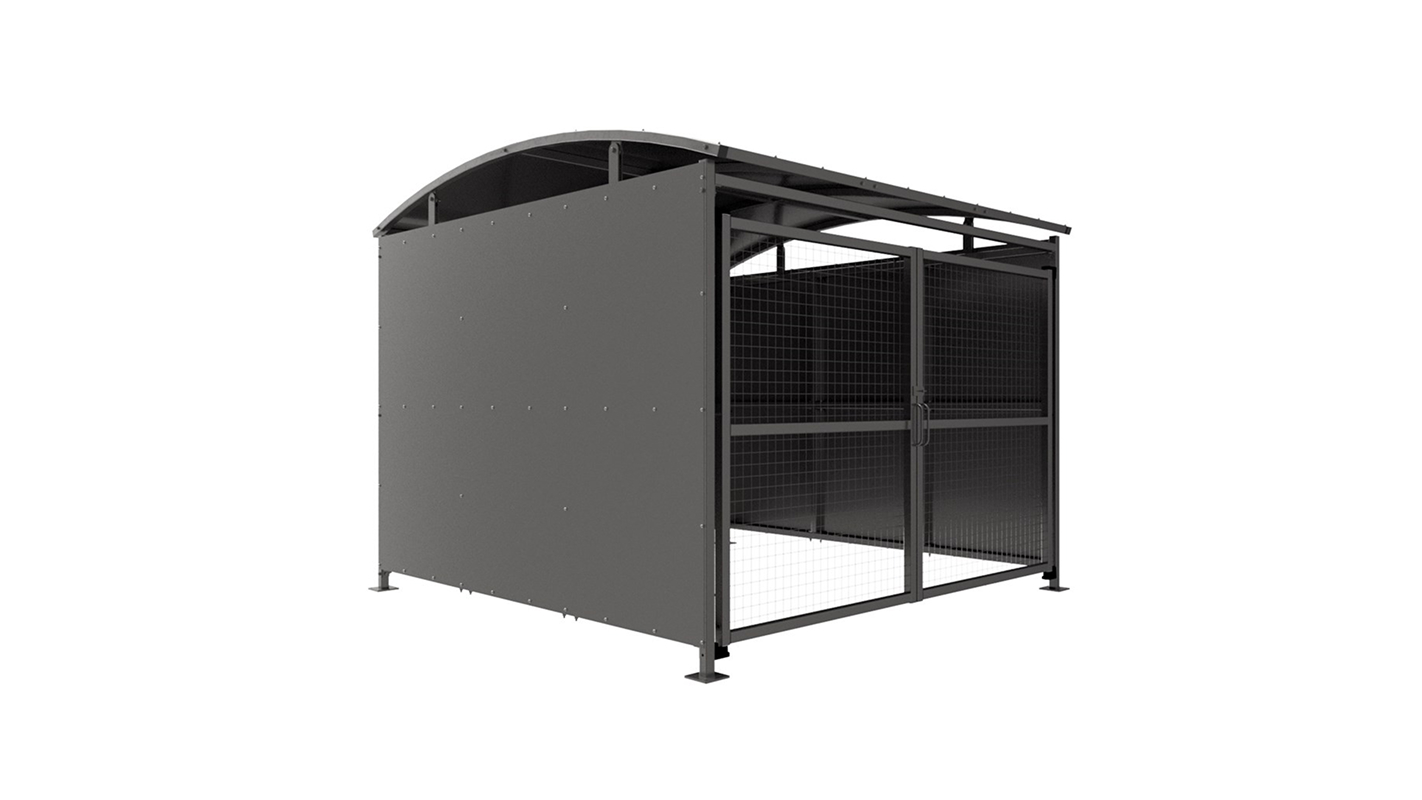 The DM1 variant of the Dodford shelter is a free-standing shelter with Mesh Doors lockable by padlock (not included) designed for on site assembly, constructed from galvanised mild steel. Complete with a galvanised sheet curved roof and end panels.