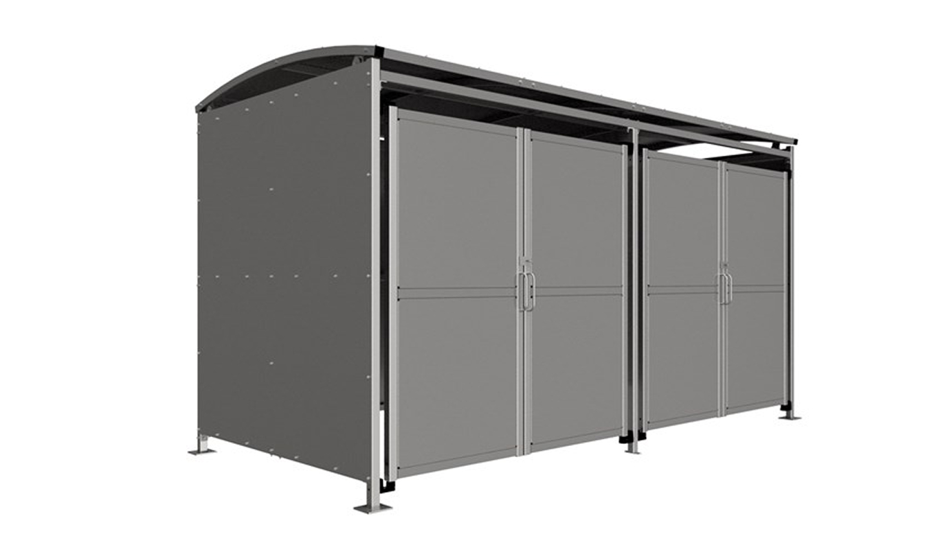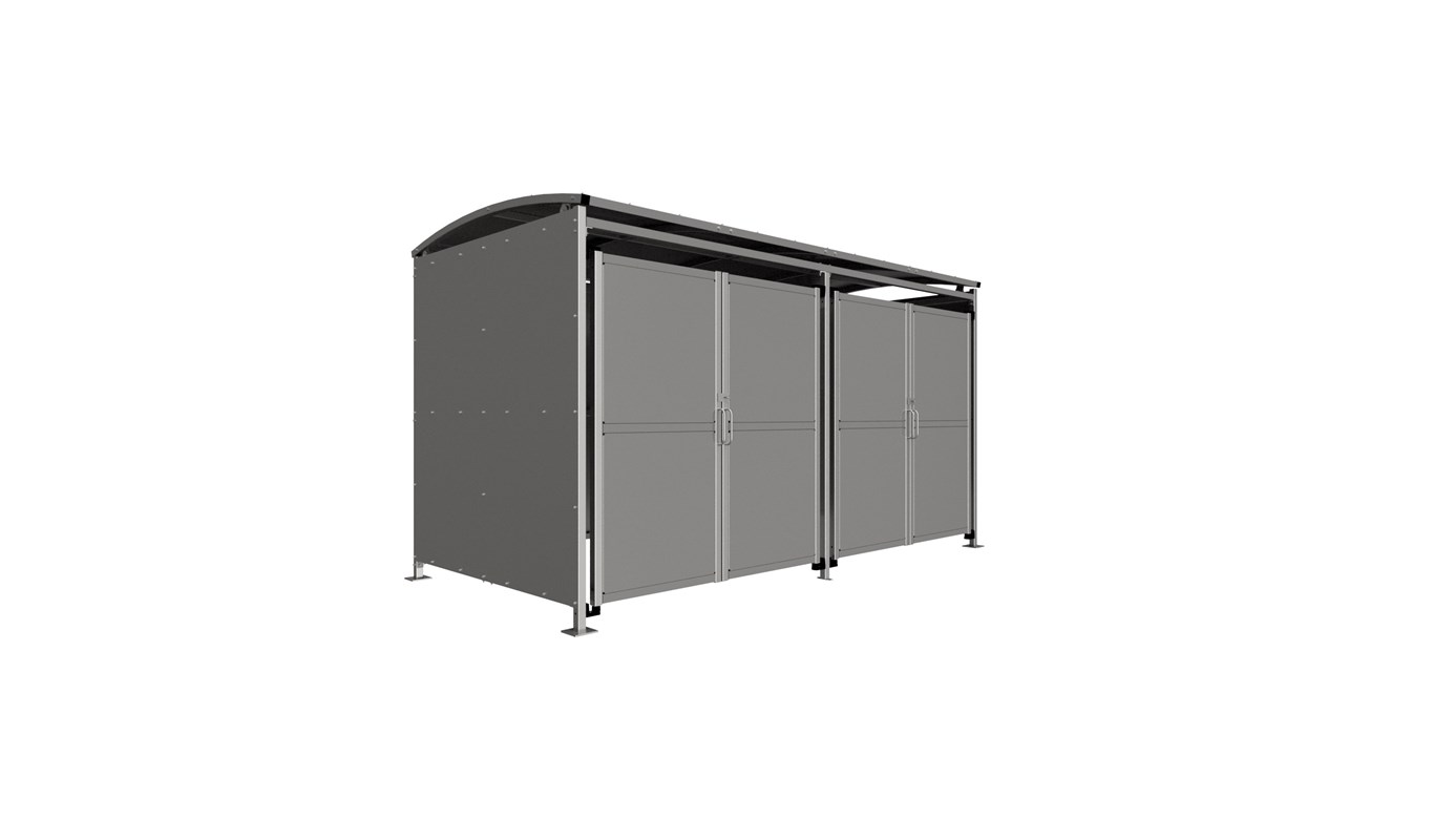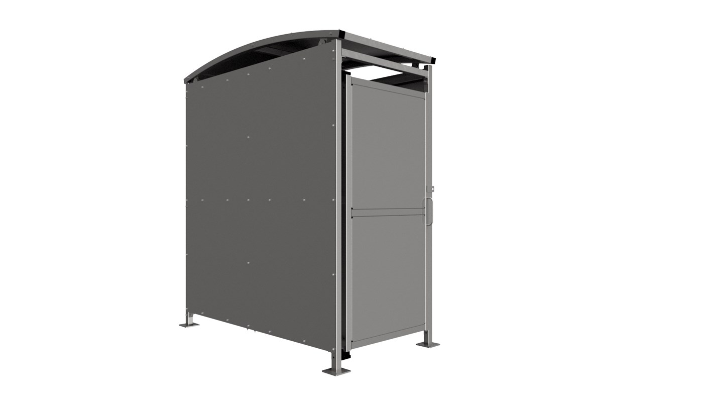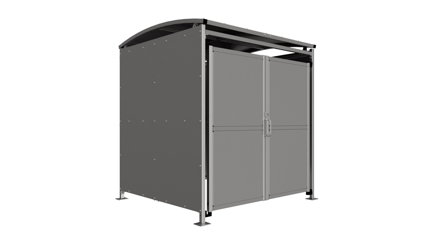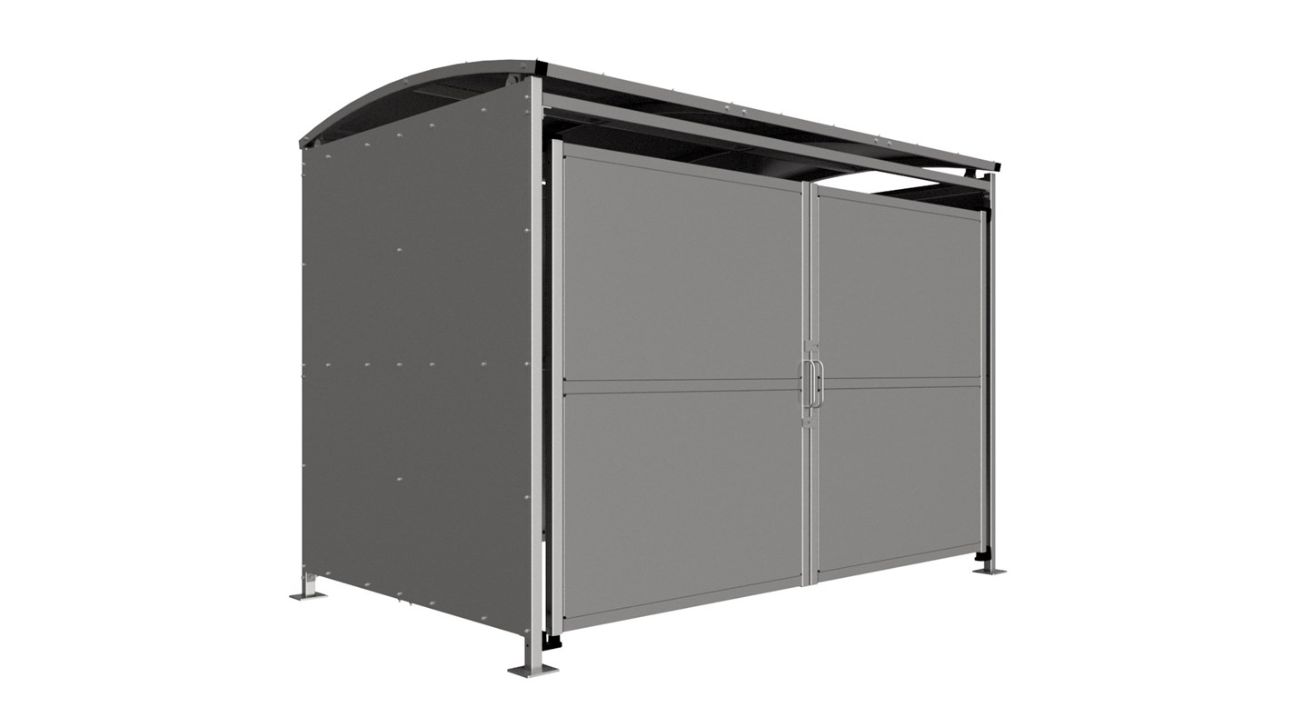 The MM2 variant of the Badby shelter is a free-standing shelter with Galvanised sheet clad Doors lockable by padlock (not included) designed for on site assembly, constructed from galvanised mild steel. Complete with Galvanised sheet roof, and side panels. Front-to-back curved roof.