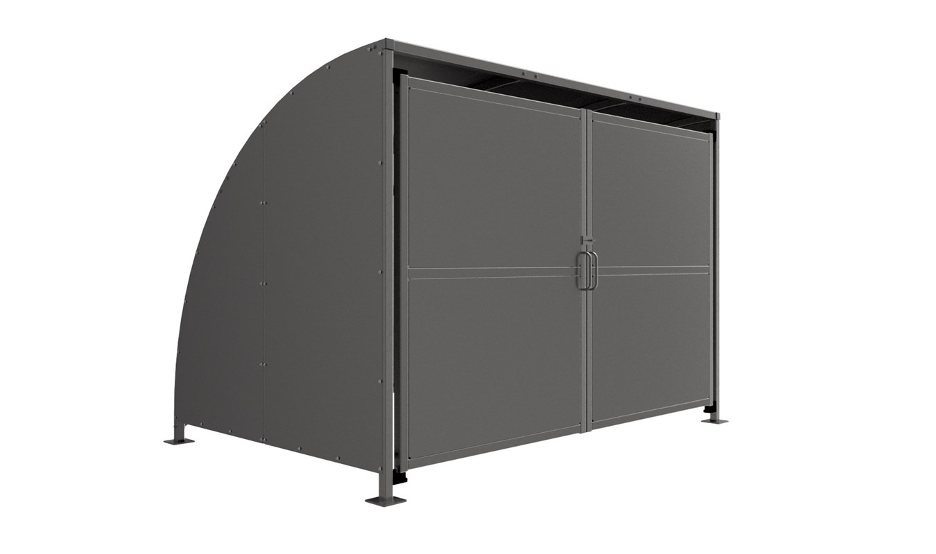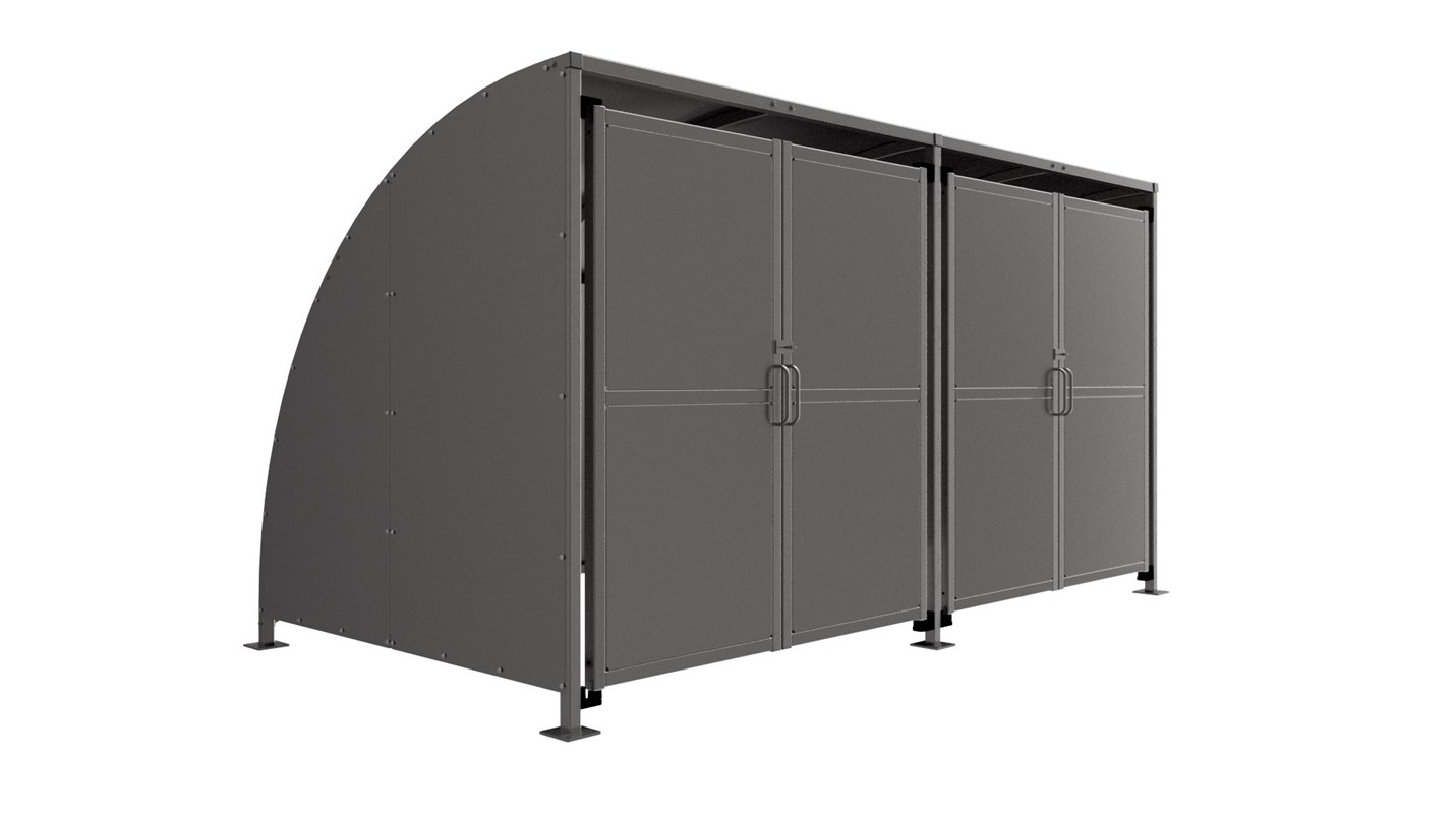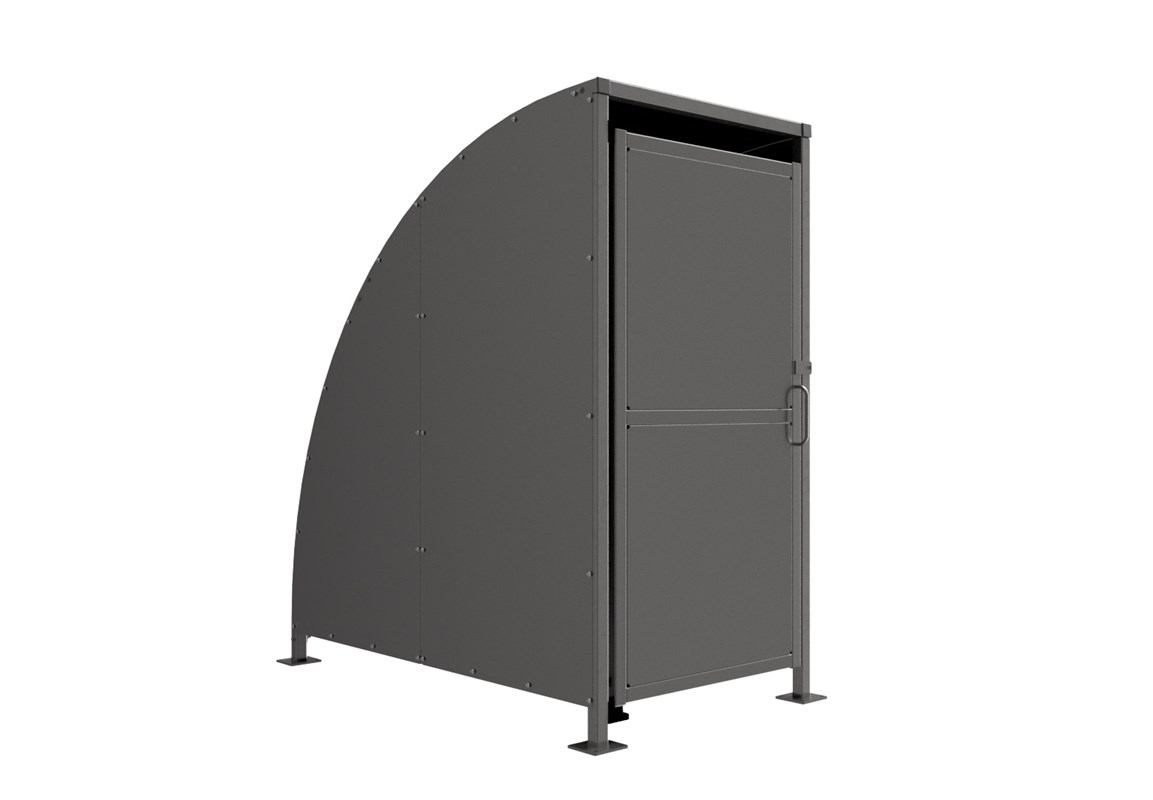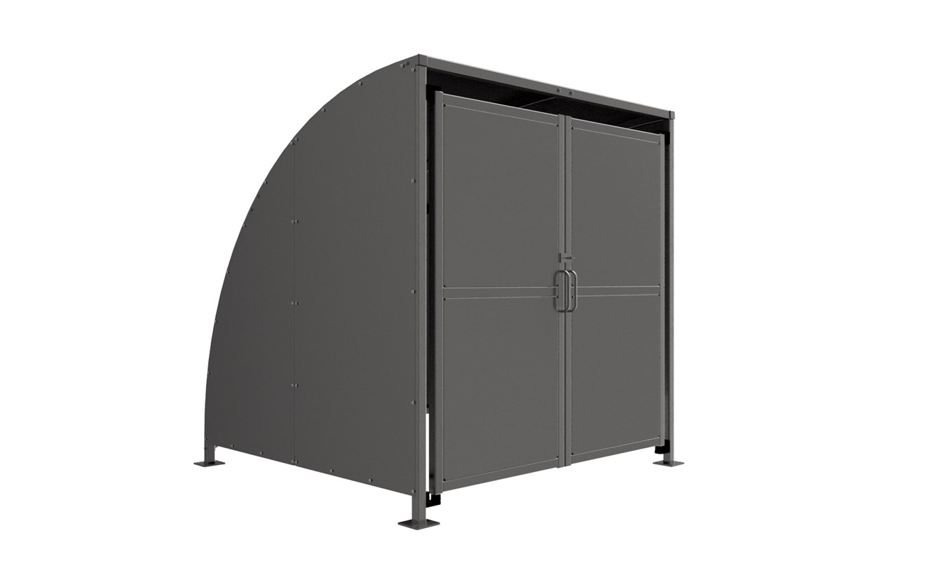 The SG2 variant of the Stratford shelter is a free-standing shelter with Clad Doors lockable by padlock (not included) designed for on site assembly, constructed from galvanised mild steel. Complete with a galvanised sheet curved roof and end panels.