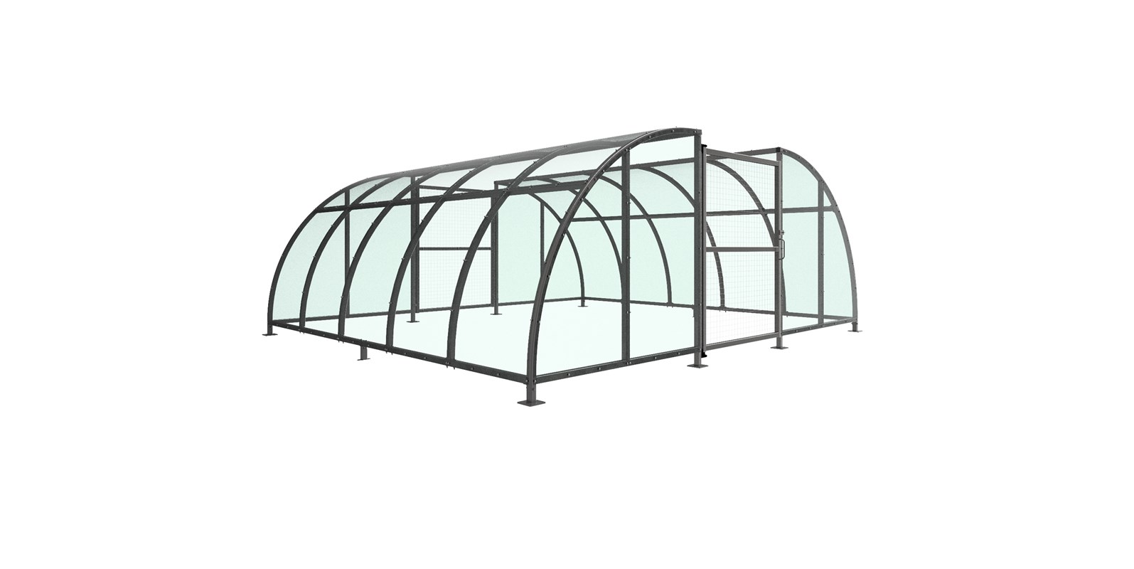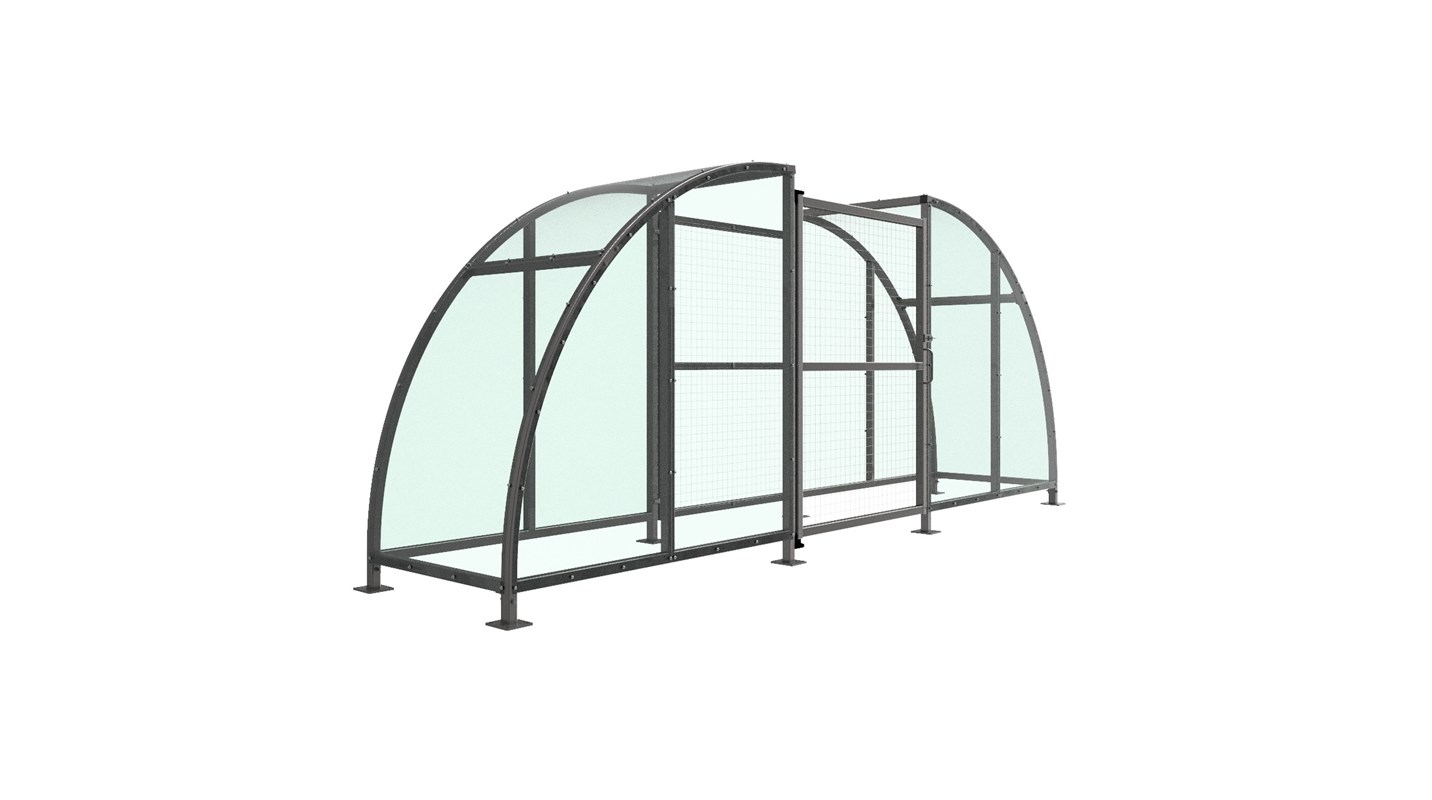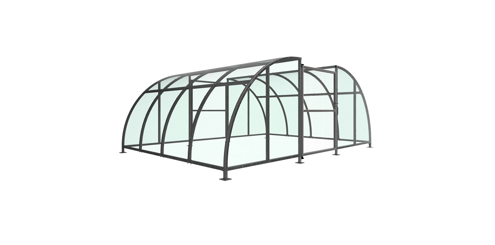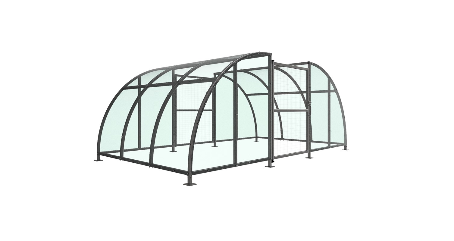 The Stratford Compound is a free-standing shelter with a Mesh Door lockable by padlock (not included) designed for on site assembly, constructed from galvanised mild steel. Complete with a 4mm PETG clear sheet curved roof and end panels.