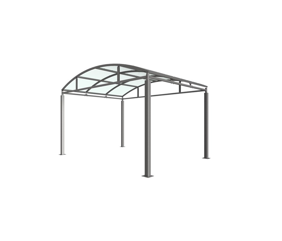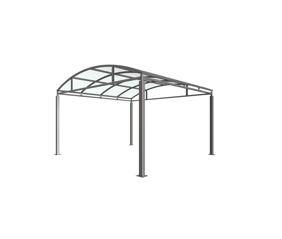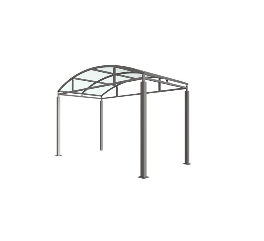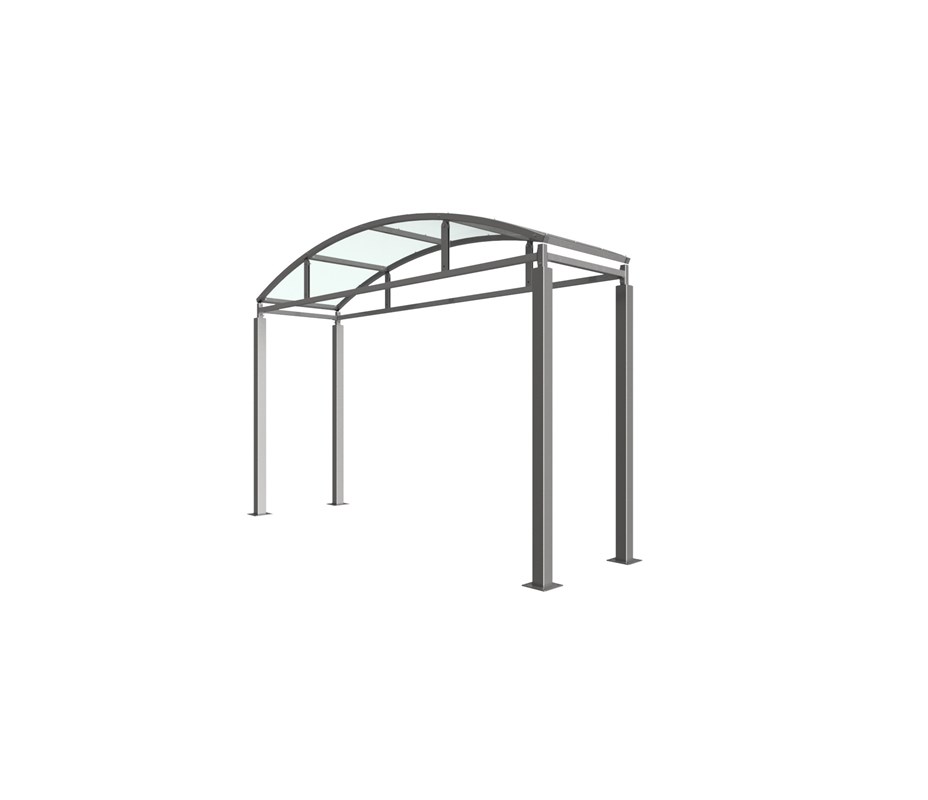 The Shelton shelter is a free-standing, open sided shelter designed for on site assembly, constructed from galvanised mild steel. Complete with a 4mm PETG clear sheet curved roof.