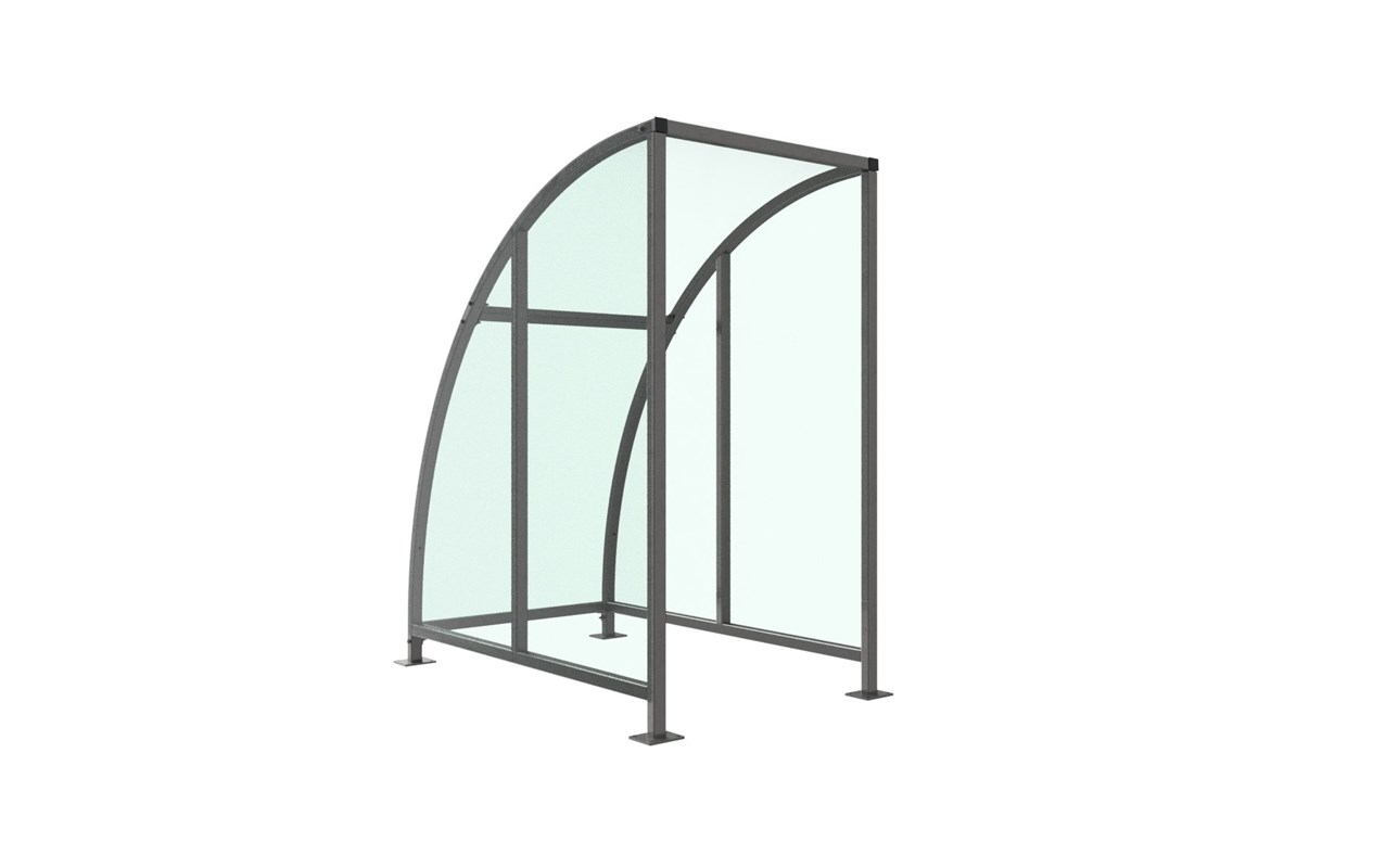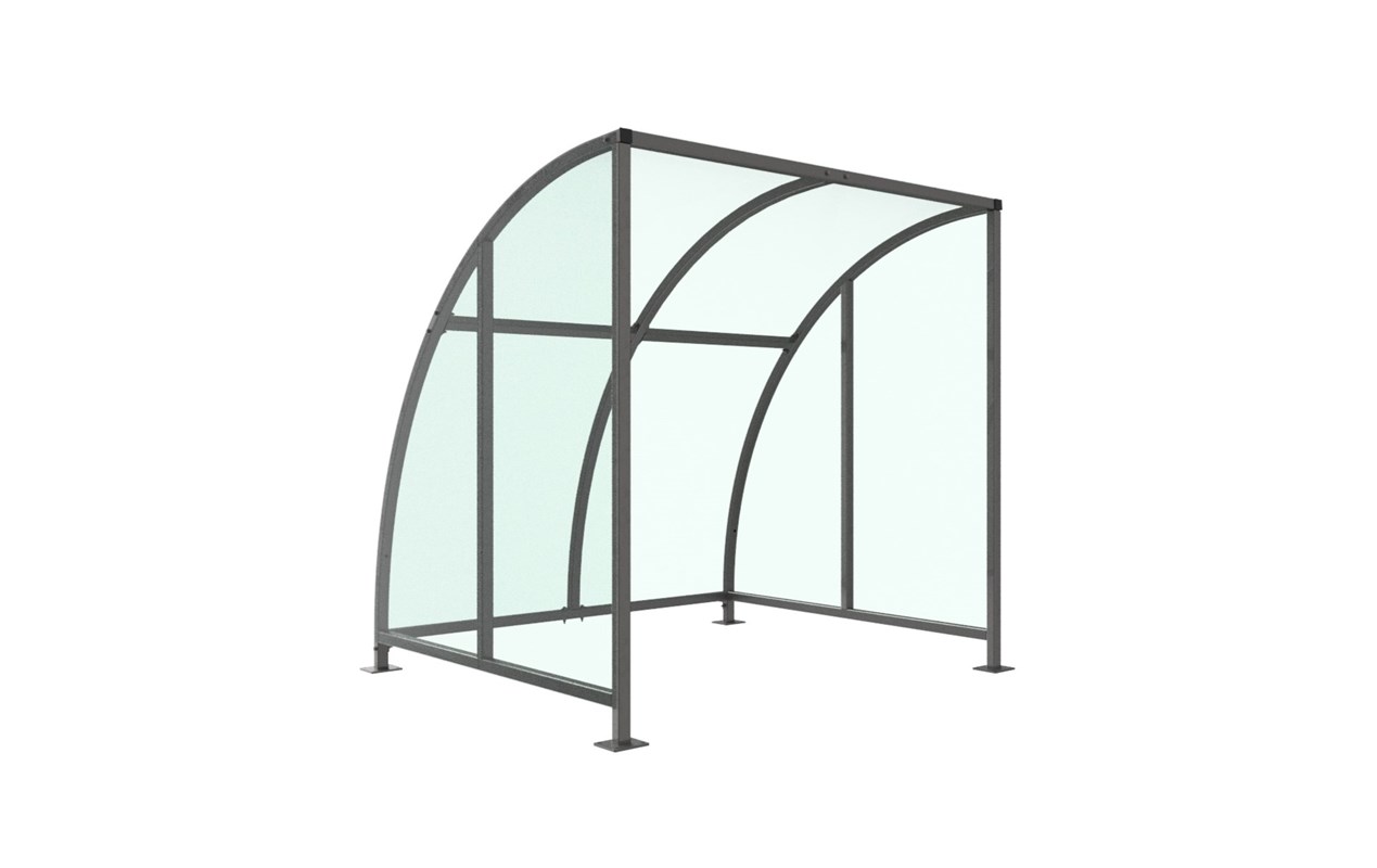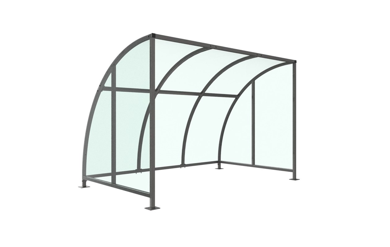 The Stratford shelter is a free-standing, open sided shelter designed for on site assembly, constructed from galvanised mild steel. Complete with a 4mm PETG clear sheet curved roof and end panels. Width of 2m, with lengths from 1m-5m, extension bays can be added to achieve the desired shelter length. Bolt down as standard.