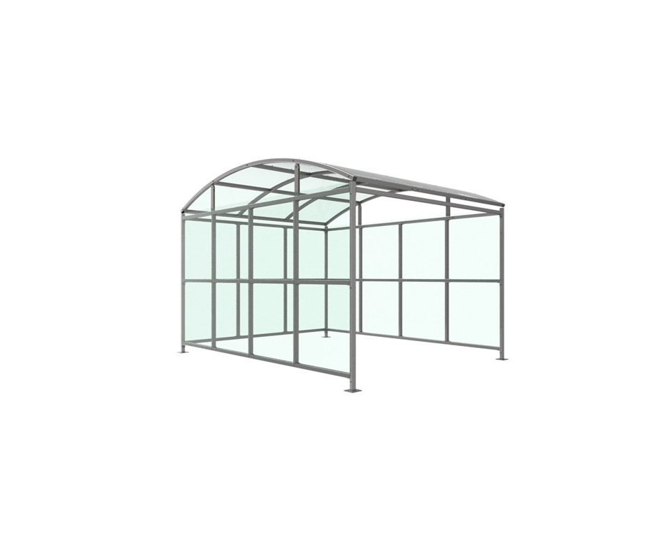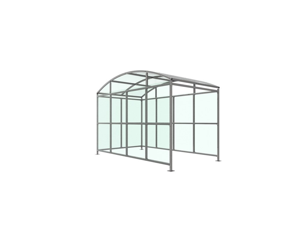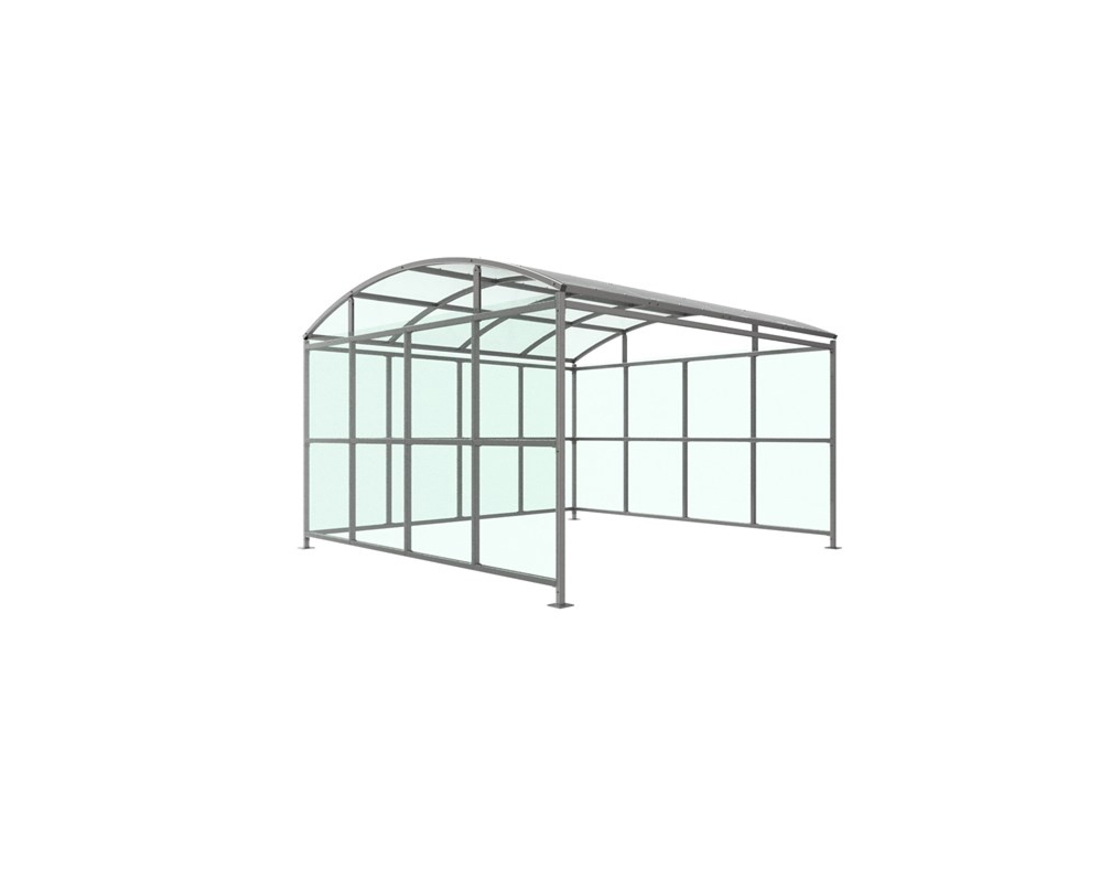 The Wilson shelter is a free-standing, open fronted shelter designed for on site assembly, constructed from galvanised mild steel. Complete with a 4mm PETG clear sheet roof, and side panels. Side-to side curved roof. Width of 4m, with lengths from 1m-5m, extension bays can be added to achieve the desired shelter length. Bolt down as standard.
