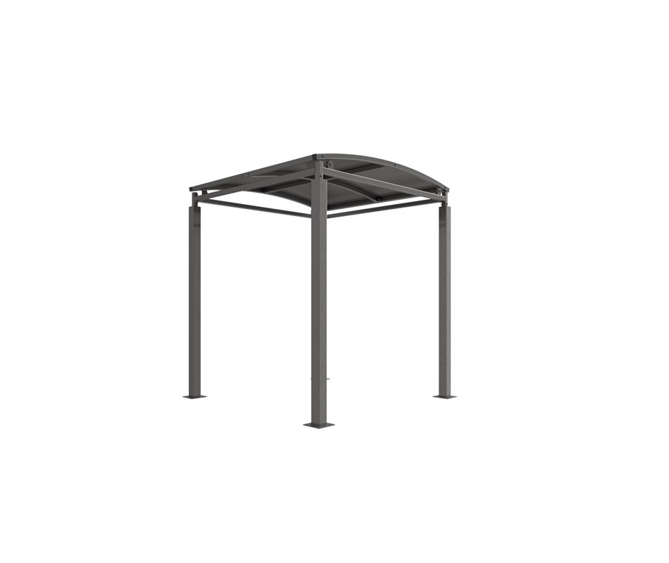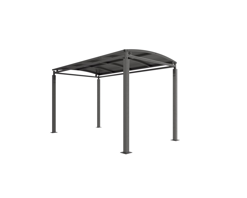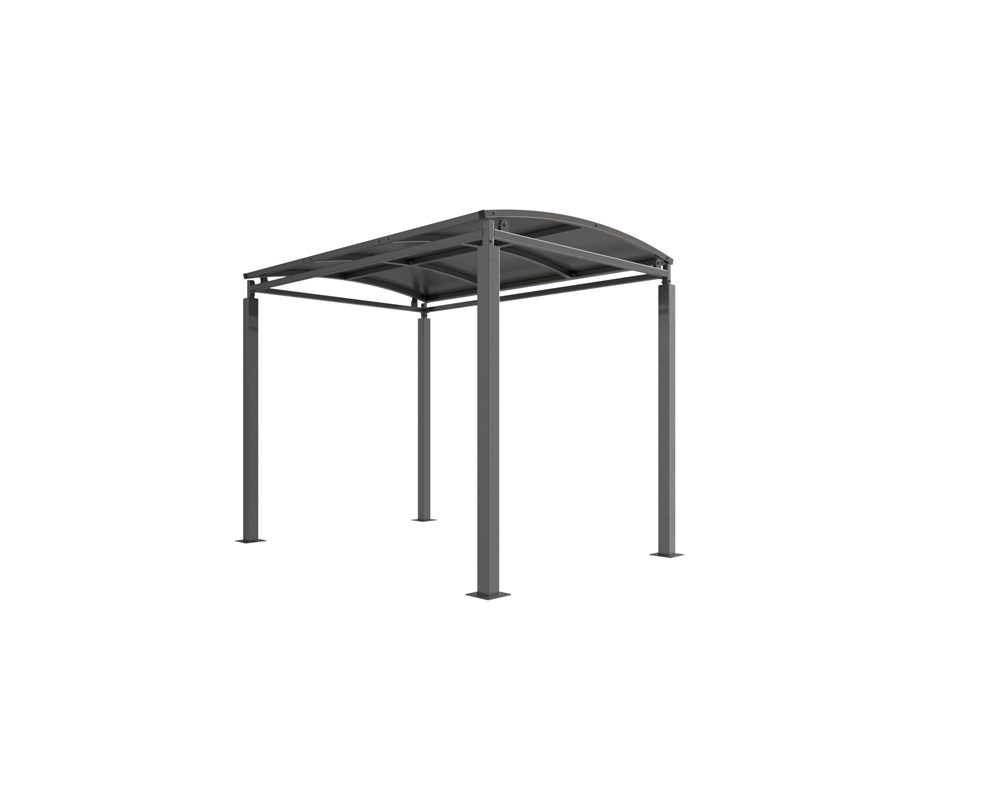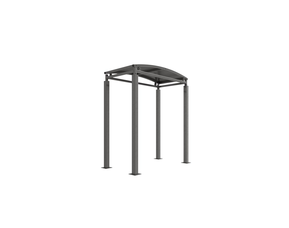 The Denham shelter is a free-standing, open sided shelter designed for on site assembly, constructed from galvanised mild steel. Complete with galvanised sheet curved roof.