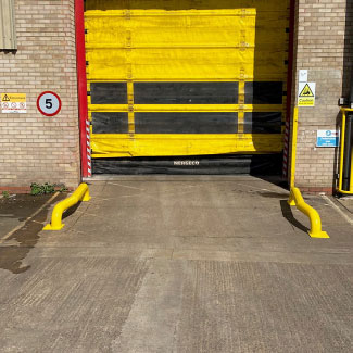 The AUTOPA Cranked HGV wheel guides provide a solid, steel kerb to allow the safe reversing into loading bays by wagons and delivery trucks. Also suitable for protecting racking, equipment and machines from potential damage caused by forklift trucks and moving vehicles.